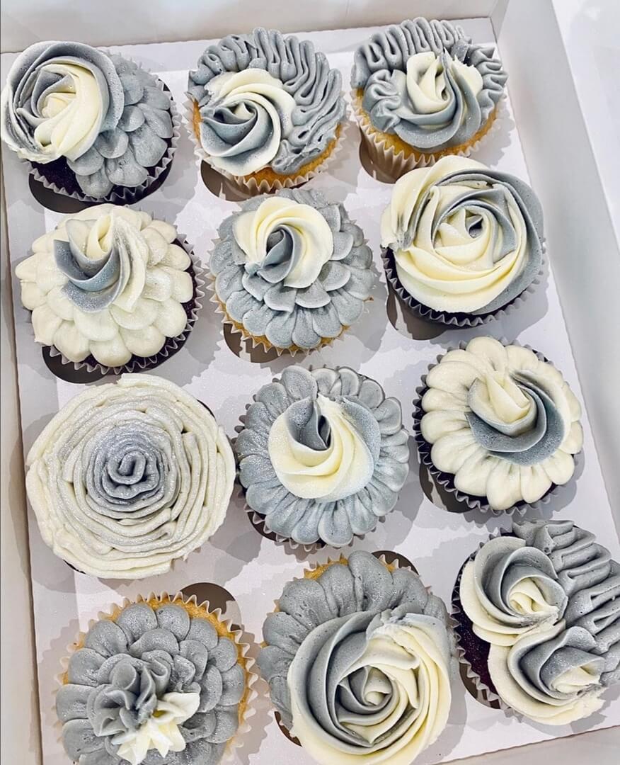 Сочетание серого и белого цветов в капкейках добавляет им особенную изюминку...