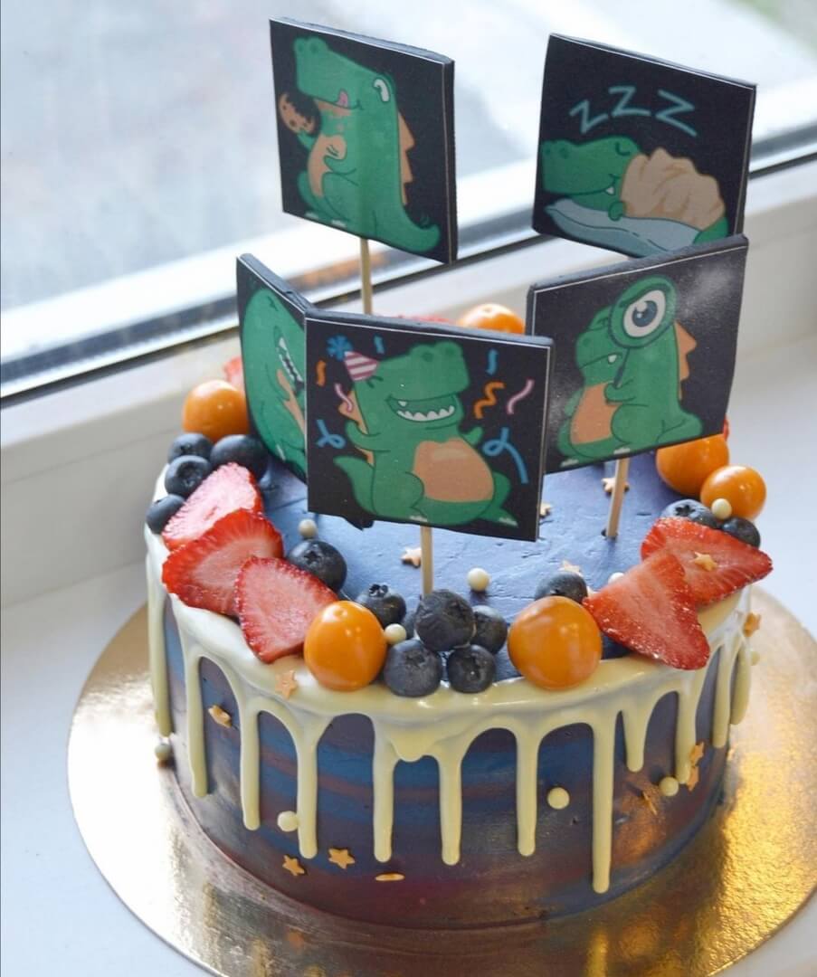 Не только детишки любят динозавров! Милейший вариант оформления взрослого тортика с динозавром