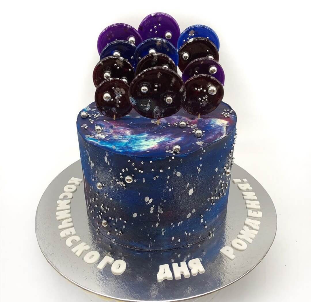 Вкусный тортик, оформленный в космической теме - самое то для целеустремленных мечтаталей!