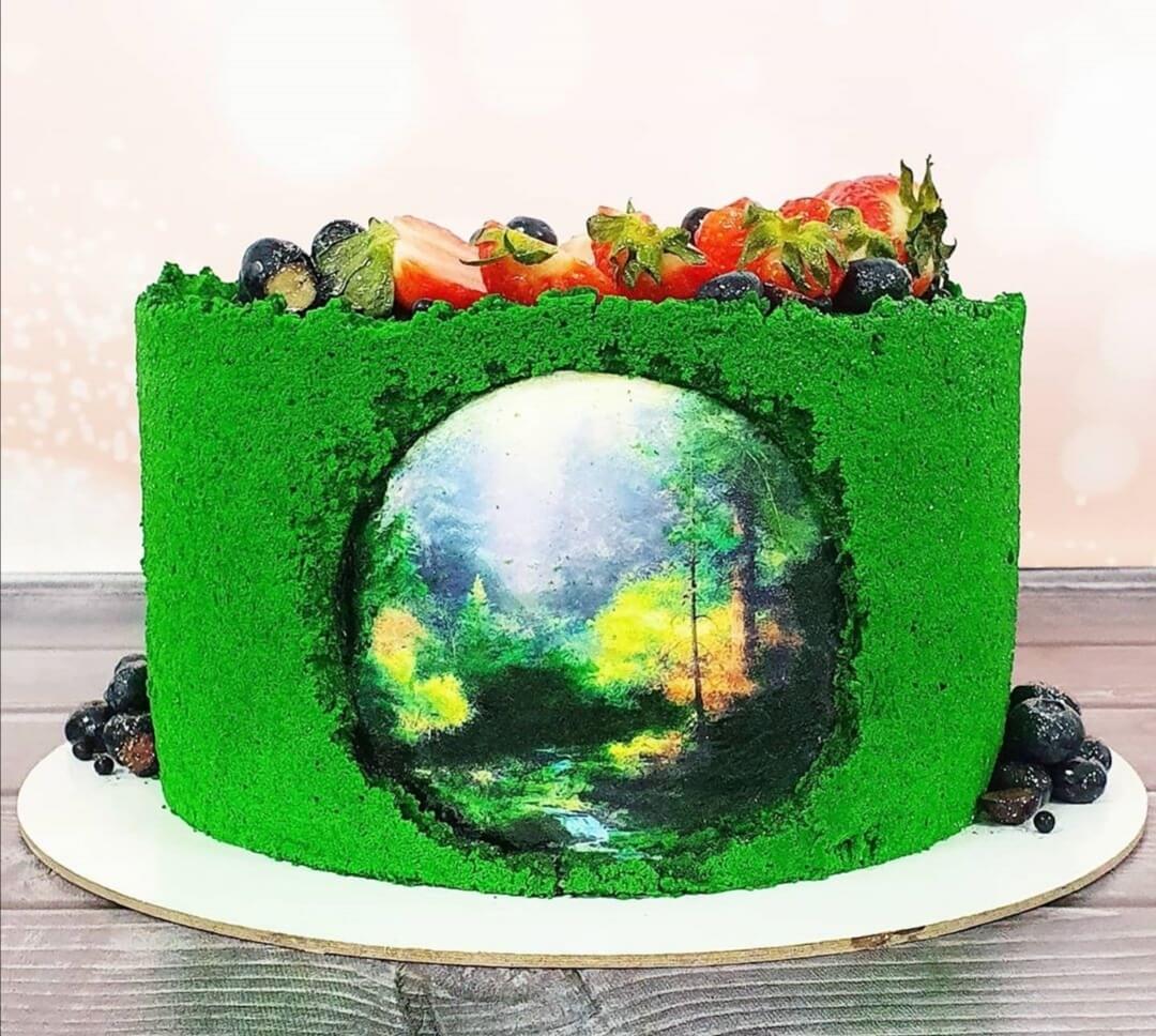 Тортик с изображением летней природы где-то, где не ступает нога человека