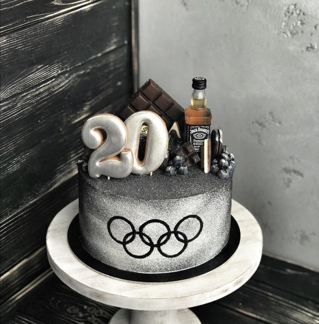 Спортсмены, атлеты и все причастные к олимпийским играм люди могут быть поздравлены таким очаровательным и стильным тортиком