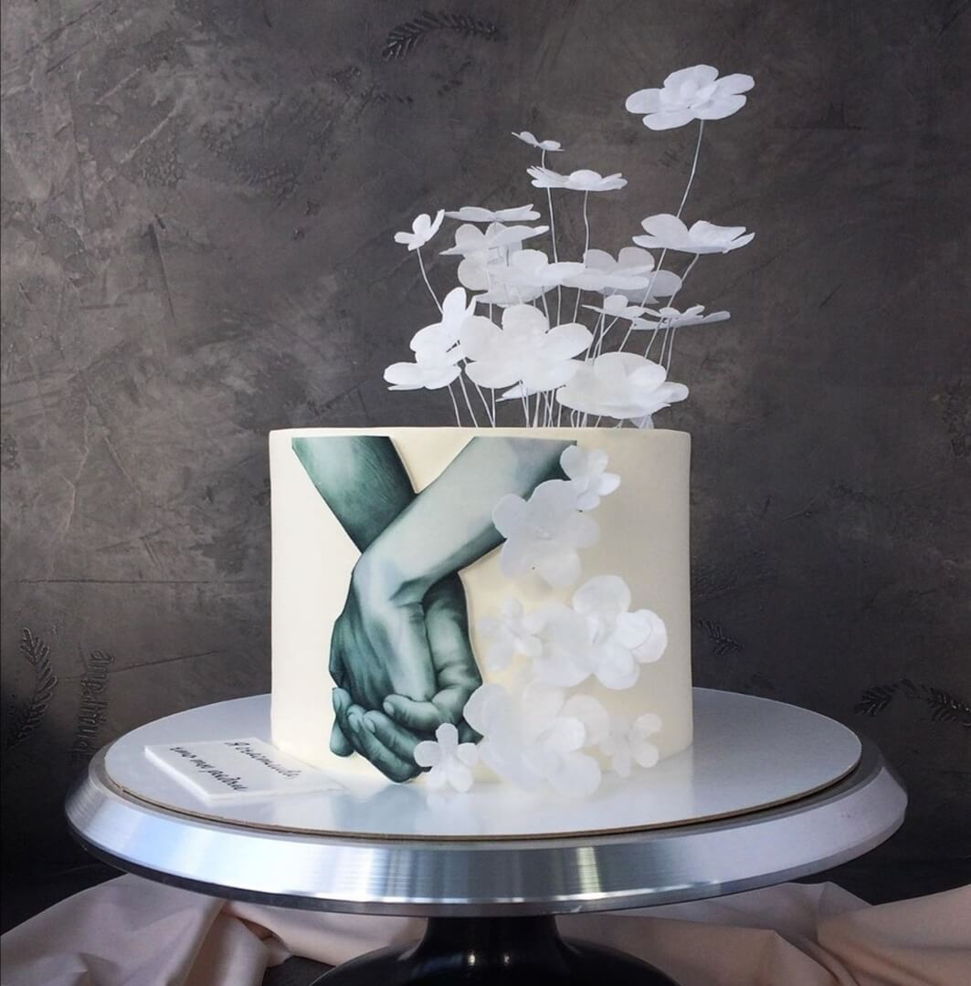 Этот трогательный жест, полный любви, может прекрасно отразить ваши теплые отношения на милом и нежном тортике
