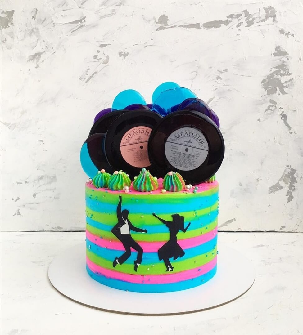 Стильный тортик в ретро-теме окунет вас в ритм зажигательного танца прямиком из прошлого века...