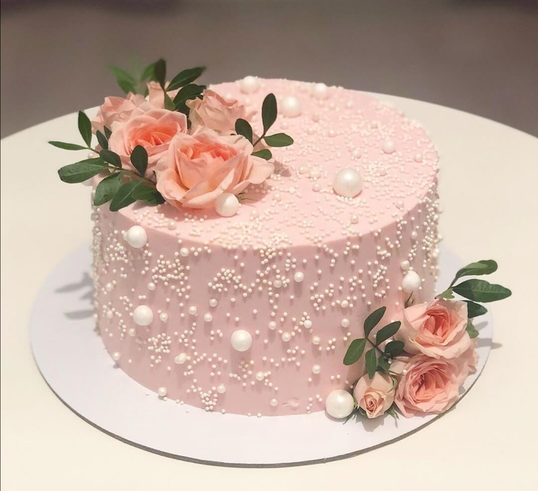 Жемчужно-розовое оформление тортика на тридцатилетний юбилей свадьбы!