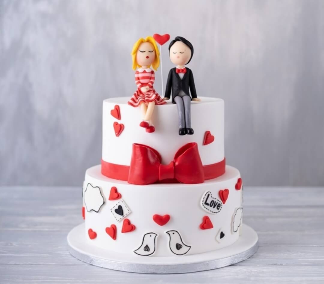 Милая влюбленная парочка украшает поздравительный тортик и напоминает всем о вашей безграничной и полной нежности любви